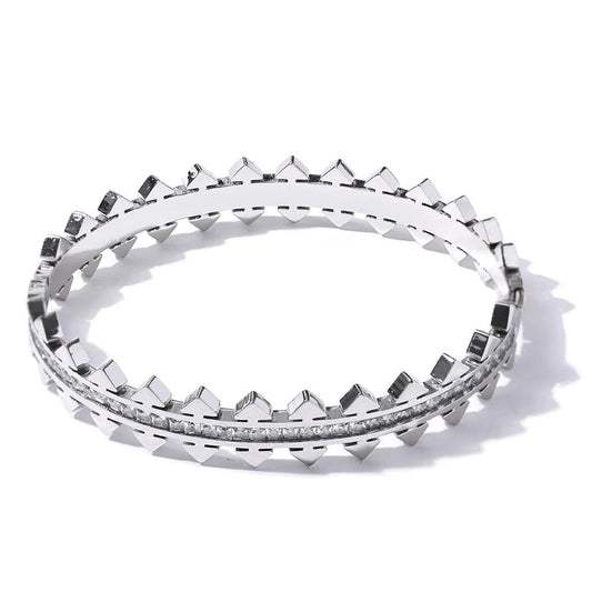 Bracelet Acier Doré Femme Élégant avec Cristaux Scintillants et Motifs Modernes