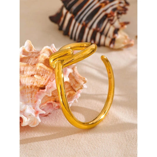 Bracelet Acier Doré Femme Élégant à Design Ouvert et Moderne