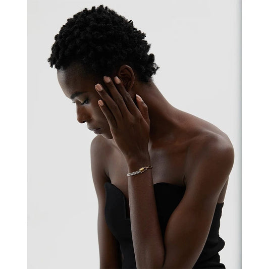 Bracelet Acier Femme Doré avec Cristaux Éclatants - Élégance et Brillance Assurée