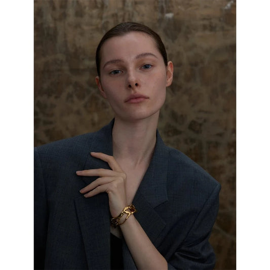 Bracelet Manchette Sculpturale en Acier Inoxydable - Élégance Minimaliste et Moderne
