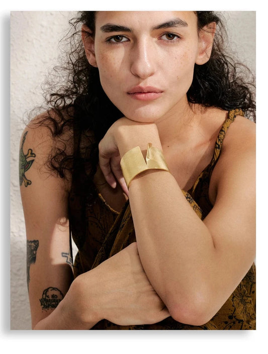 Bracelet Manchette Organique Doré - Éclat Naturel et Chic Moderne