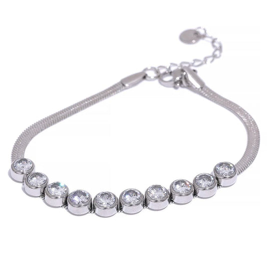 Bracelet Chaîne Serpent Doré avec Zircons Éblouissants pour Femme - Élégance et Raffinement
