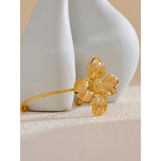 ÉpuiséBracelet Jonc Fleur en Acier Doré pour Femme – Éclat Élégant et Féminin