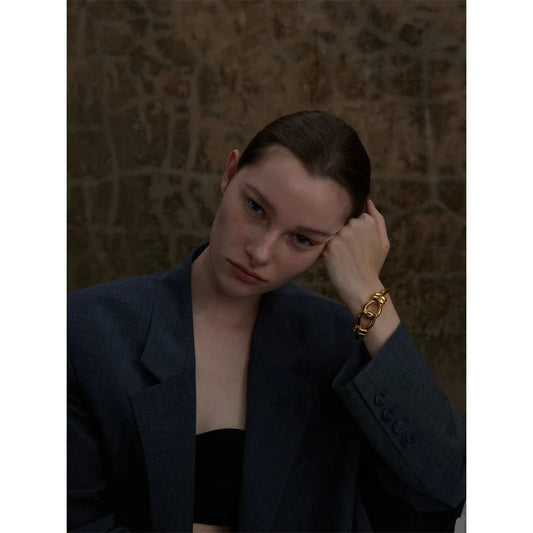 Bracelet Manchette Femme Élégant en Acier Doré - Style Chaîne Luxe et Confort ajustable