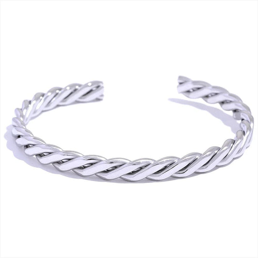 Bracelet en Acier Inoxydable Doré pour Femme – Élégance Torsadée Moderne.