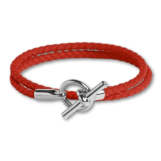 PromoBracelet Cuir Tressé Double Tour avec Fermoir Argenté