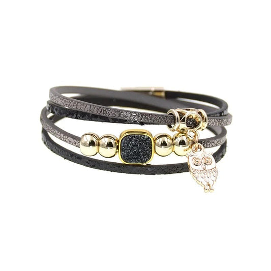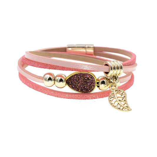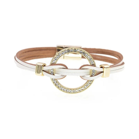 Bracelet élégant en Cuir et doré avec pierres scintillantes pour Femme.