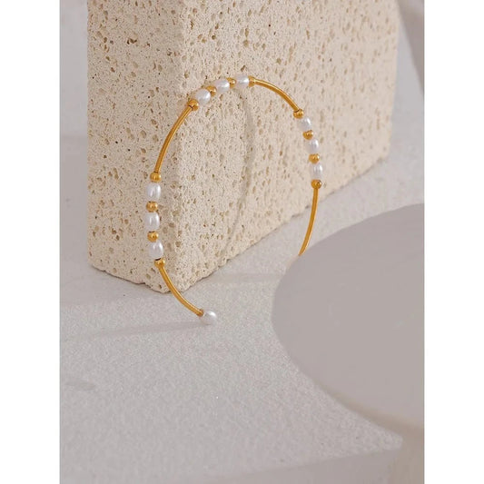 Bracelet Élegance Femme en Acier avec Perles - Sophistication Moderne