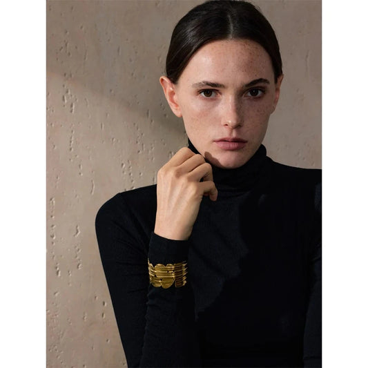 Bracelet Manchette Sculpturale en Acier Inoxydable - Élégance Minimaliste et Moderne