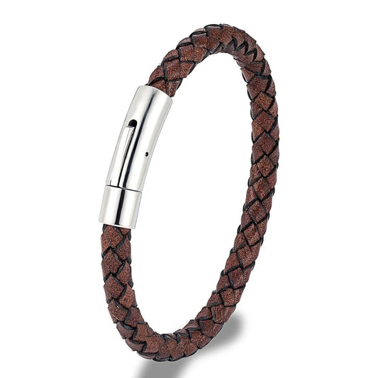 Bracelet Cuir Tressé Homme Élégant avec Fermoir Métal Résistant