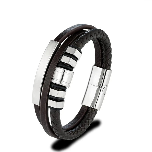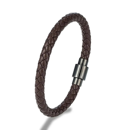 Bracelet Cuir Homme Tressé Élégance Moderne avec Fermoir Magnétique.