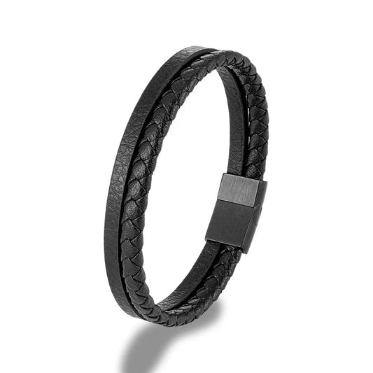 Bracelet Cuir Homme Tressé Noir Élégant avec Fermoir Magnétique