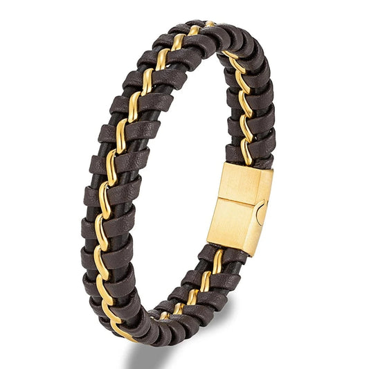 Bracelet Cuir Homme Moderne et Élégant avec Détails Métalliques Tressés