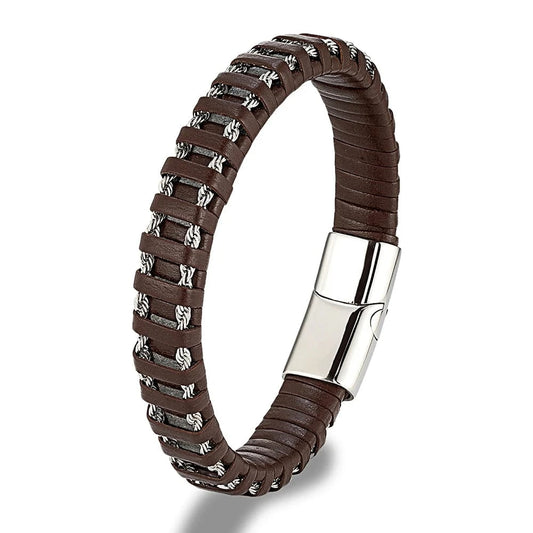 Bracelet Cuir Homme Élégant avec Maillons Métalliques – Style Industriel Moderne