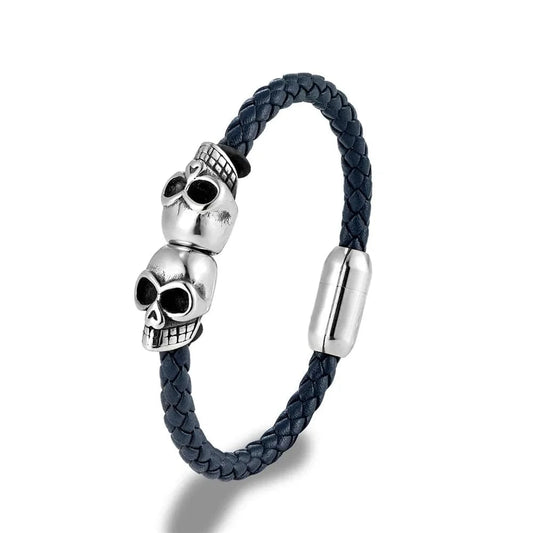 Bracelet Cuir Homme Crâne - Élégance Rebelle en Noir et Argent